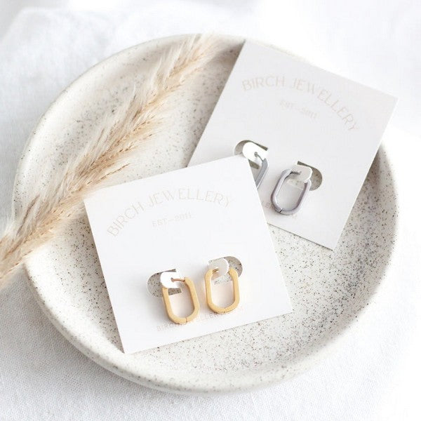 Not your average hoops. These oval-shaped huggie hoops will quickly become a staple in your jewellery box. Featuring a clicker closure for comfort and security.