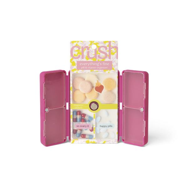 Everything really is fine when you’re a walking pharmacy. With seven snap-close compartments for just-in-case, travel and everyday doses, these compact pill and vitamin organizers come with two sheets of stickers to label each medication.