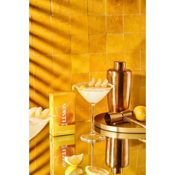 Tart, punchy, and impossible to resist, here’s how to enjoy your Lemon Drop gummies: Pop one into a chilled cocktail or place a few onto a garnish pick and use as a tangy treat to finish a cocktail, add to gift bags, party favours, or citrus-themed bundles, or just chew and chill! These gummies are pure sunshine and tanginess in a bite.