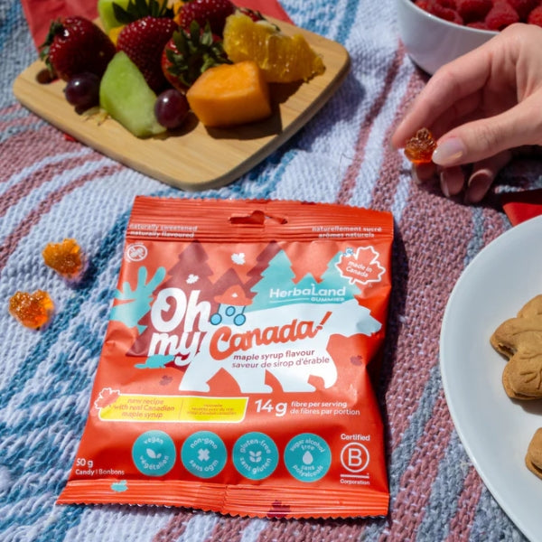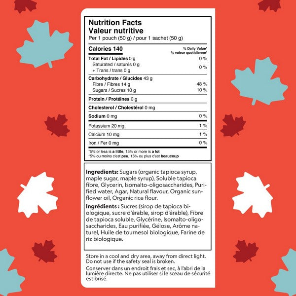 Oh my! These gummies are the best candy around, made with plant-based ingredients and 14 g of fibre! In an exclusive maple syrup flavour, these tasty gummies are made with real Canadian maple syrup and are coated with delicious maple sugar.
