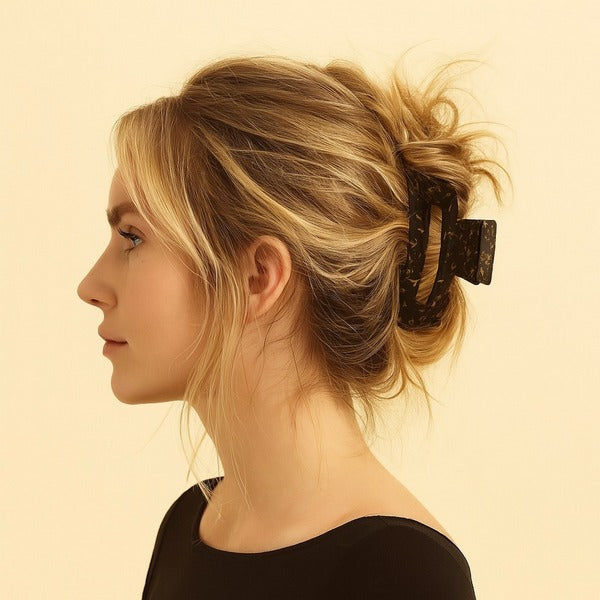 We love how versatile this hair claw can be for almost any hair type or occasion. Short to medium hair folks can get all of their hair out of the way, and longer or thicker hair could be put in a half up style.