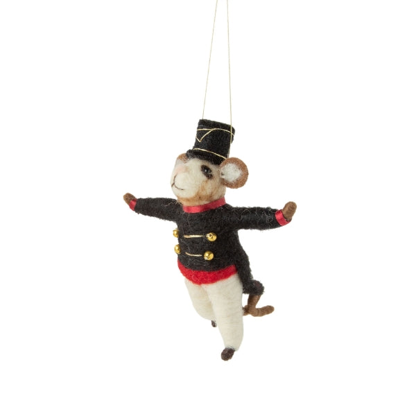 Celebrate the magic of the holiday season with this playful Mouse Nutcracker ornament, crafted in soft black felt. Inspired by the spirited character from the classic holiday ballet, it adds a touch of charm and whimsy to your tree. Lightweight and full of personality, this ornament brings a delightful dance of festive fun to your holiday decor.