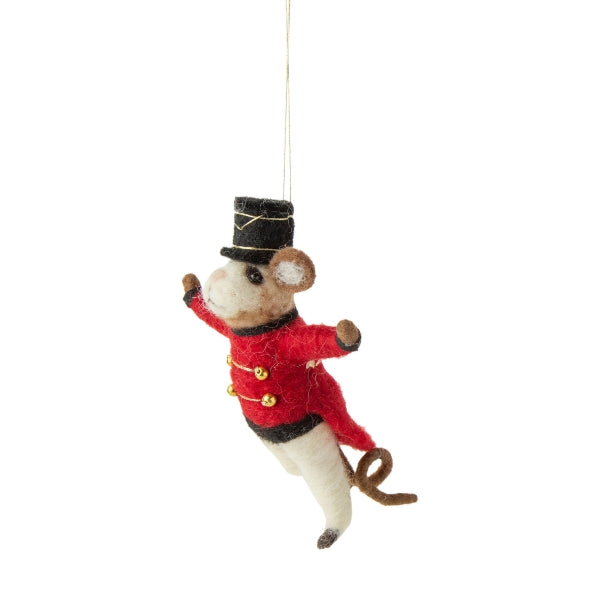 Celebrate the magic of the holiday season with this playful Mouse Nutcracker ornament, crafted in soft red felt. Inspired by the spirited character from the classic holiday ballet, it adds a touch of charm and whimsy to your tree. Lightweight and full of personality, this ornament brings a delightful dance of festive fun to your holiday decor.