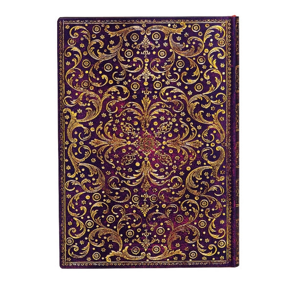 This Paperblanks Flexis Aurelia soft cover notebook design is fit for a king. Its inspiration dates back to Paris in the mid-18th century and the original binding housed copies of King Louis XV's procedures for Holy Week. This book design is a marvellous riot of gold-tooled rococo elements, featuring birds, flowers and leaves.