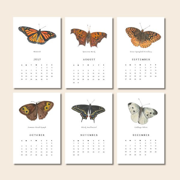 Celebrating the exquisite beauty and graceful movement of butterflies found throughout our natural landscape, each month features a detailed watercolour painting of a different species, capturing the unique characteristics and delicate charm of these remarkable creatures. Turn each card over to discover fascinating details about size, colouration, habitat, and distinguishing features of every specimen.