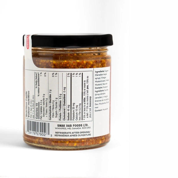 Rich, syrupy, and delectable: All Smak Dab blends are locally sourced, but they created one flavour that sings Canada - Canadian Maple. Prairie-grown mustard seed meets 100% pure Quebec maple syrup. The result is not only as rich as you’d imagine but incredibly versatile: As awesome on cedar plank salmon as roasted squash or in a balsamic tahini dressing.