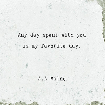 This coaster reads: "Any day spent with you is my favorite day. - A.A Milne""