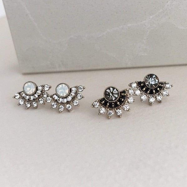 Add some sparkle to your outfit with the Nico Fan earrings from Lover's Tempo. The posts are sterling silver, the brass is gold-plated, and the crystals are Swarovski.