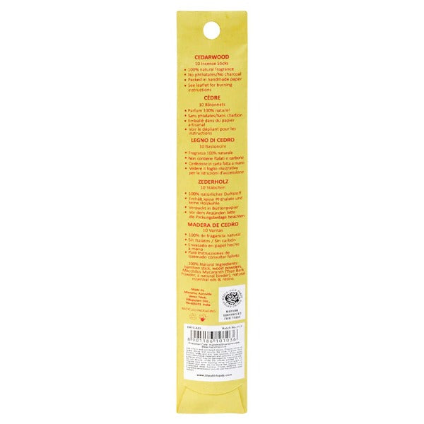 Maroma's incense sticks are produced in small batches of bamboo dipped in 100% natural essential oils for fragrance. One package includes ten incense sticks.