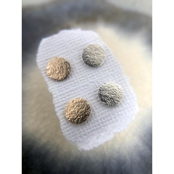 Open Fire's Sun Studs are an essential pair of studs for everyday wear. These simple studs can be paired with your favourite glamorous look or comfiest casual outfit. A true everyday essential piece of jewellery. The textured look gives these studs extra personality.