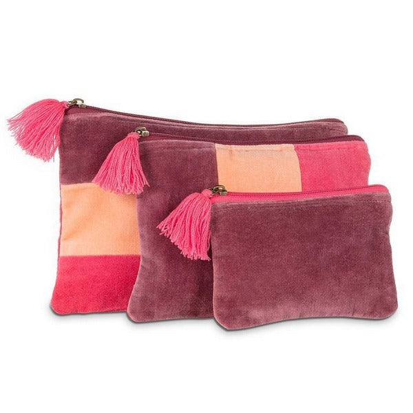 This Medium Velvet Pouch with Tassel features soft tones in muted pinks, and the cotton velvet texture adds a luxurious feel, while the subtle stripes create a sophisticated pattern. Perfect for storing jewellery, cosmetics, or small treasures, these pouches combine practicality with a touch of understated elegance, ideal for any occasion.