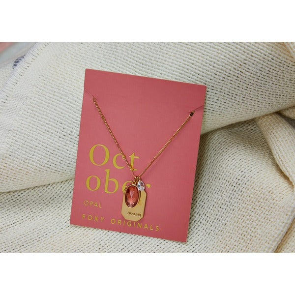 The birthstone collection lets you individualize your everyday style with effortless and easy-to-layer cluster charm necklace. The October Birthstone Necklace showcases a radiant oval cut opal-toned gemstone that represents healing.