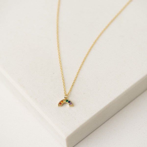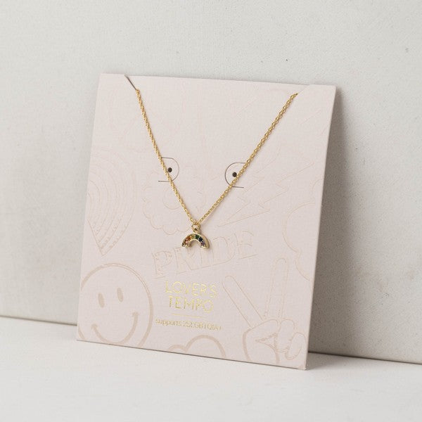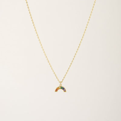 Gold-plated and featuring cubic zirconia crystals in the colours and shape of the rainbow, this necklace is a celebration of the entire 2SLGBTQQIA community.