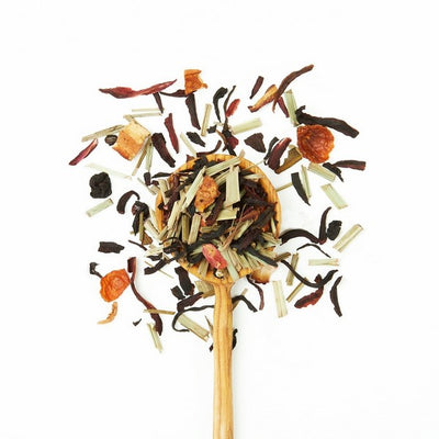 Ingredients: Organic Lemongrass, Kenyan Purple Tea, Hibiscus, Apple Pieces, Rosehips, Natural Passion Fruit Flavour