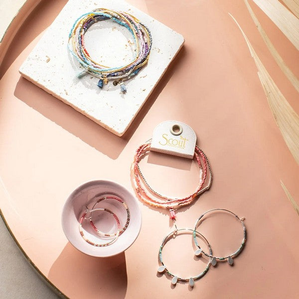Scout's new line of minimalistic charm features the perfect pieces to adorn your ears. Sleek Miyuki Delica beads create vibrant pieces in colourful hues. Mix and match bracelet stacks and earrings for a look that is fun and modern.