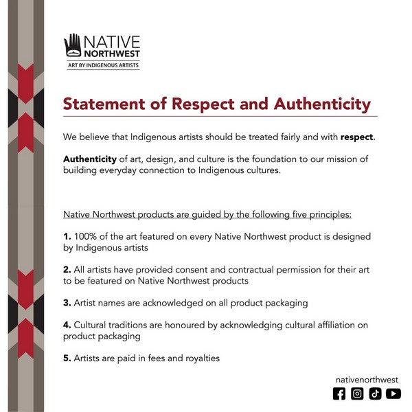 Native Northwest operates on the unceded traditional territory of xʷməθkʷəy̓əm (Musqueam First Nation) and Coast Salish Peoples.Authenticity of art, design, and culture is the foundation to their mission of building everyday connection to Indigenous cultures.