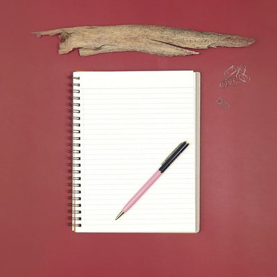 An elegant notebook with a fine linen cloth on thick cardboard with 100 ultra-soft natural lined paper pages. Perfect for any and all of your thoughts.