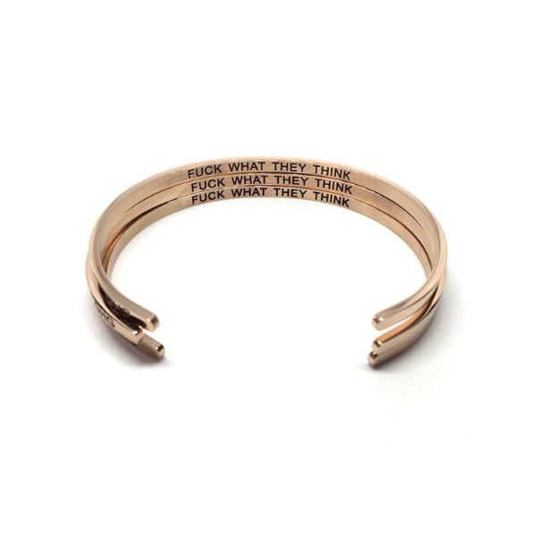 This Yellow Gold bangle reads: "FUCK WHAT THEY THINK"